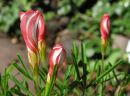 Бутоны, которые еще не успели распуститься, содержат в себе спиральные свернутые лепестки, а их трубочка кверху плавно становиться шире. Полностью распустившиеся бутончики белые внутри и бело-красные с тыльной стороны.