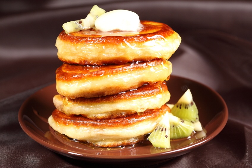 Ваши толстые и пористые оладьи готовы. Можете подавать к завтраку со сметаной и вареньем.