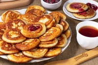 Прекрасно сочетаются оладьи со сметаной, вареньем, сиропами, медом или со сгущенным молоком.