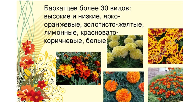 Виды и сорта бархатцев