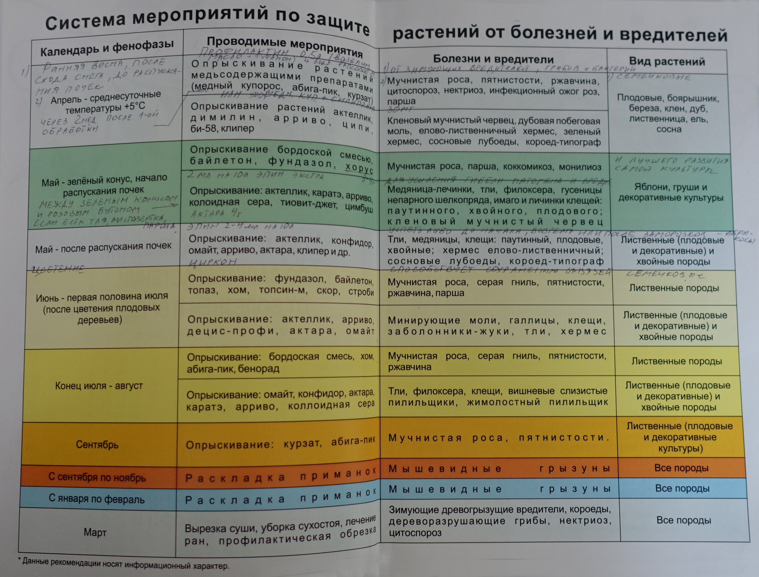 График опрыскивания фруктовых деревьев