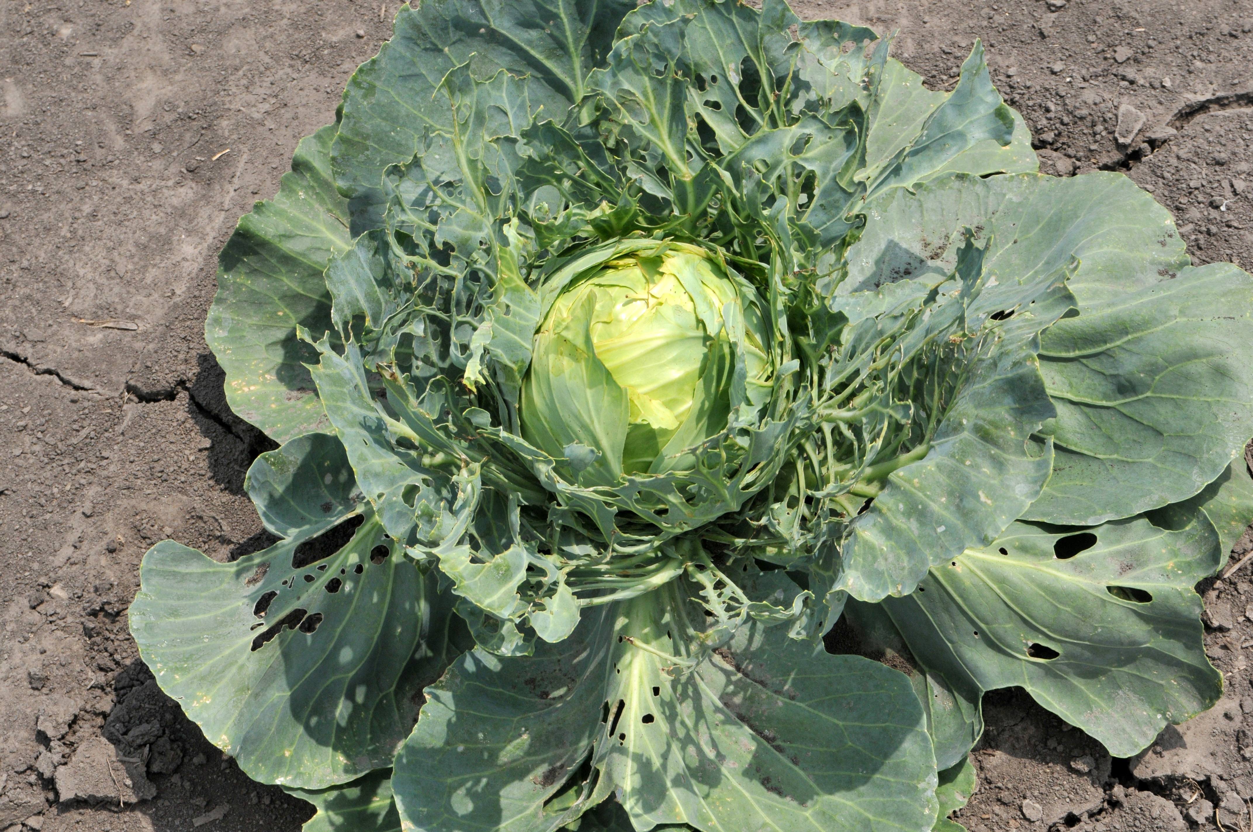 Кочан с поврежденными личинками корнямиЛичинки майских жуков, капустной мухи и озимой совки, живущие в земле – особенно опасны, потому что они способны уничтожить не только листву, но и корни капусты во время формирования урожая.