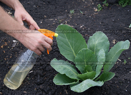 - Специфический запах нашатырного спирта не переносят самые злостные вредители капусты: тля, муравьи, мухи, медведки, долгоносики, слизни. Препарат используют для защиты растений и одновременно для азотной подкормки. 50 мл спирта (1 флакон) разводят в 10 л воды и опрыскивают растения из пульверизатора или обливают из лейки.
