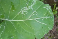 Личинки моли Diamondback также могут быть разрушительными. Яйца находятся на нижней стороне нижних листьев, а личинки маленькие, желтовато-зеленые, с раздвоенным хвостом. Хотя они питаются всеми частями растений, они обычно предпочитают бутоны молодых растений. Ищите молодых личинок, выходящих из небольших отверстий на нижней стороне листа.