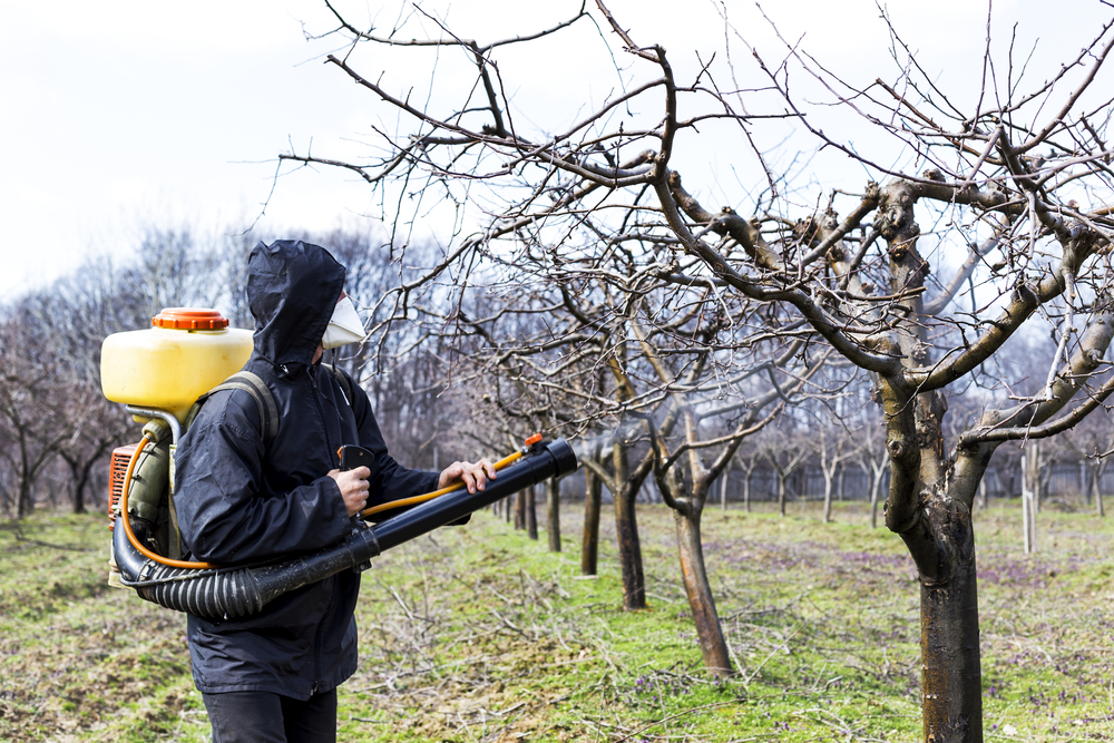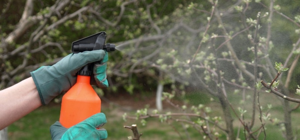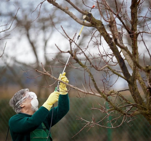 При проведении опрыскивания следует добиться того, чтобы смесь полностью покрыла побеги, ветви и ствол деревьев.