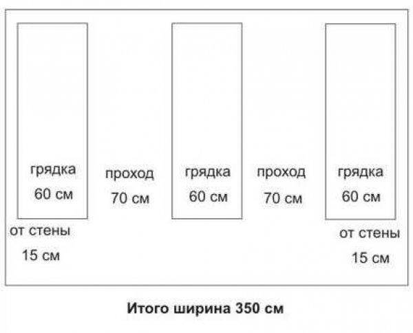 Делают шириной не менее 40 см, но предпочтительнее предусмотреть еще более широкие проходы, так как в этом случае есть возможность укрепить края гряд при помощи досок или шифера.