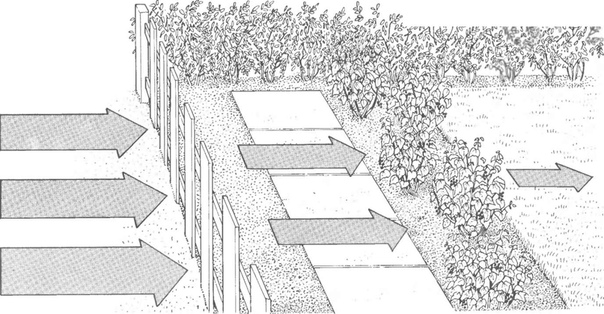 Сначала получается все хорошо: деревья не занимают много места, света и питания хватает и для других растений. Но со временем деревья разрастаются, и тогда промежуточные культуры попадают в тень, их урожайность становится низкой. Следовательно, первое правило планировки участка — отвести отдельное постоянное место под каждую культуру. Конечно, можно временно выращивать ягодные кустарники, землянику и овощи среди сильнорослых древесных пород, но потом, когда наступит сильное затемнение, их придется убрать и переместить куда-то в другое место, о чем нужно подумать заранее.