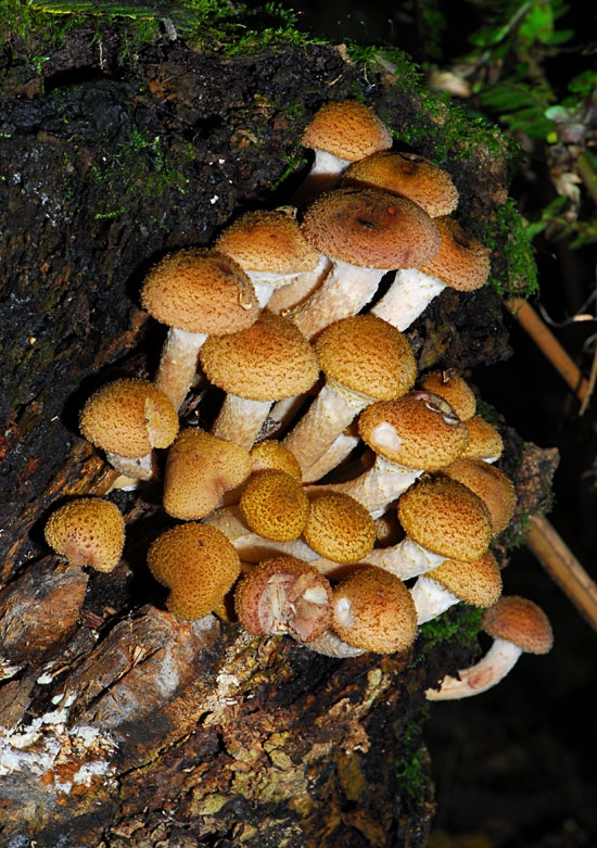 Осенние опята – настоящие, классические. В Подмосковье их много на пнях и живых деревьях. Диаметр шляпки равен 3 – 10 см. К центру она темная.