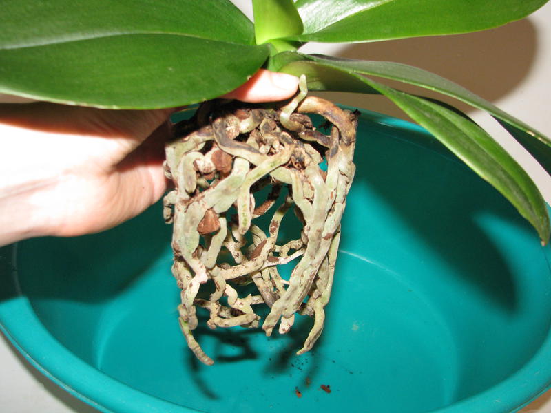 Орхидеи, произрастающие в домашних условиях в настолько стеснённых горшках, что корни остаются снаружи, требуют пересадки. Ведь корневая система развивается ничуть не хуже, чем наземная часть — листики и цветоносы.