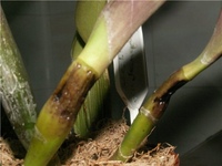 При сильном заражении стеблевой гнилью я также рекомендую вынуть орхидею из горшка и заменить субстрат. Потратьте это время, чтобы проверить корни вашей орхидеи.