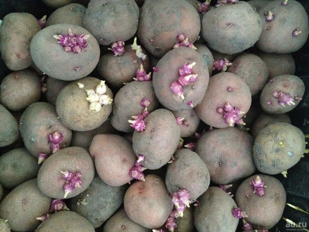 - Среднеранний картофель. Тоже сажают в апреле. Выкапывают урожай после 60-65 дней. Но в посадке такого сорта есть один небольшой нюанс — нужен пророщенный семенной картофель.