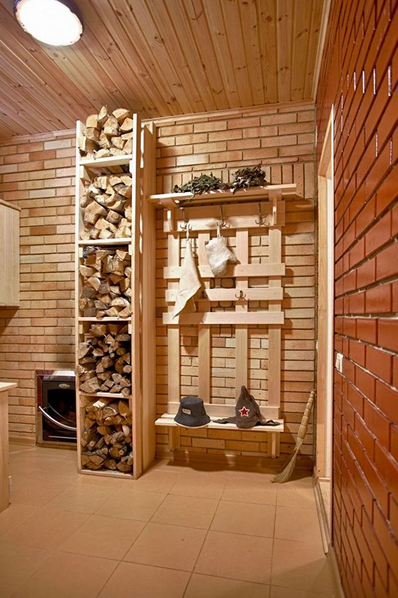 может быть холодного типа и предназначаться для раздевания и одевания, размещения одежды. Теплый предбанник предназначен для проведения свободного времени и общения. В первом случае оборудован только вешалками, полочками и шкафчиками, во втором – дополнительно может быть установлен стол, стулья, диваны, шкафчики для хранения посуды, предназначенной для чаепития. В отдельных случаях устанавливаются телевизоры, а также другая техника.