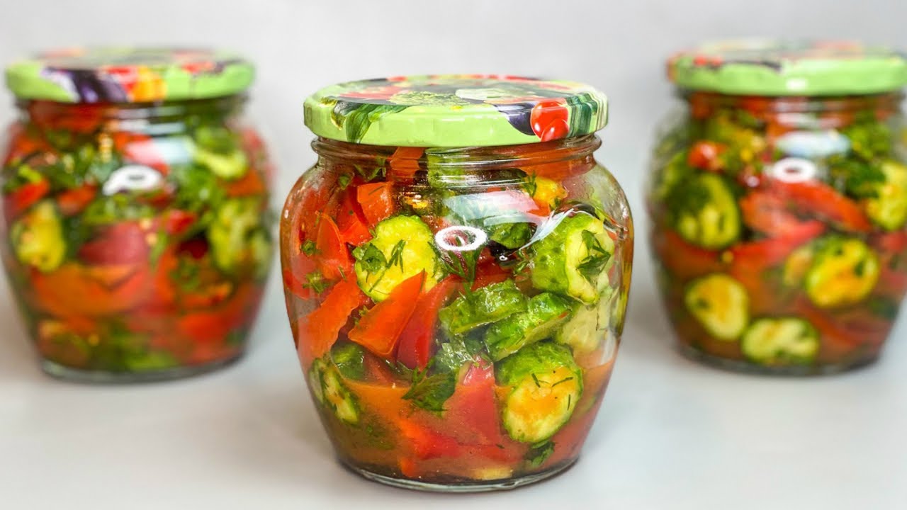 Новый рецепт заготовки из кабачков с овощами на зиму, который стал хитом последних сезонов. Очень простой и вкусный салатик с томатно-уксусно-масляной заливкой. Постарайтесь закрыть хотя бы пару-тройку баночек.