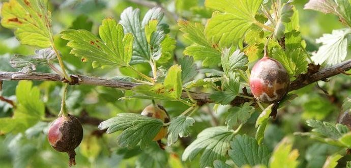 Эти плоды, как правило, не вызывают проблем, но на крыжовнике остерегайтесь нападения крыжовникового пилильщика (вызывающего дефолиацию) и американской мучнистой росы крыжовника (белые пятна на листьях или плодах, которые со временем становятся коричневыми).