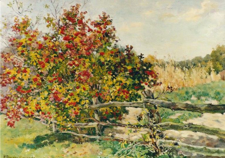 Золотистая смородина хорошо подходит для выращивания на однотонном фоне, на котором выделяются цветы, фрукты и красная осенняя листва.