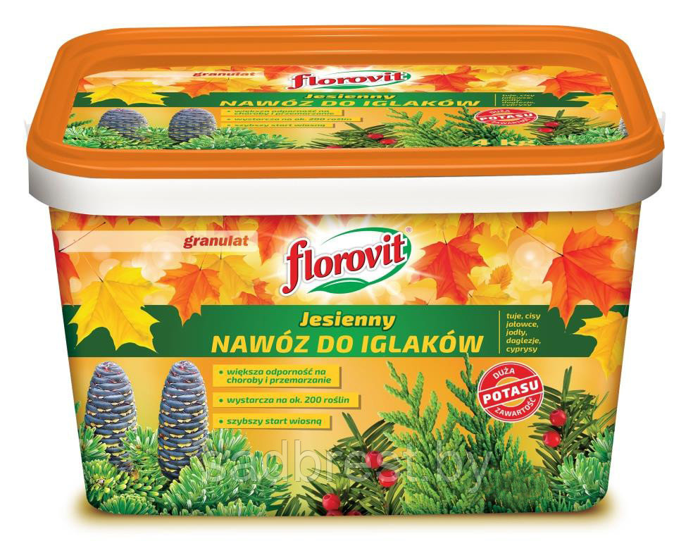 Среди таких удобрений широкое распространение получил Флоровит, способствующий одревеснению побегов, а также повышающий морозоустойчивость. Подкармливать растения Флоровитом можно до конца сентября, рассыпая гранулы по земле вокруг деревьев и кустарников (из расчета 5 г на 1 м высоты дерева или кустарника).В целом при подкормке хвойных растений желательно руководствоваться принципом «лучше недосол, чем пересол». Если вы сомневаетесь, нуждаются ли ваши зеленые питомцы в поздней подкормке, просто замульчируйте приствольные круги корой хвойных пород. Разлагаясь, она удобрит и подкислит почву, а также обеспечит корням растений дополнительную защиту от морозов.