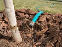 Для этого вам понадобятся шланги, проколотые во многих местах. Уложите их вдоль деревьев или вокруг каждого ствола. Соедините между собой с помощью коннекторов, доведите до основного шланга от водопровода. Система готова, начинайте полив. Сразу после завершения влагозарядного полива разрыхлите почву и замульчируйте торфом, опилками, листьями или соломой.