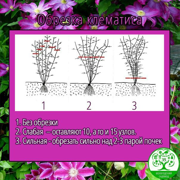 Схематично обрезка клематисов осенью укладывается в весьма простые картинки