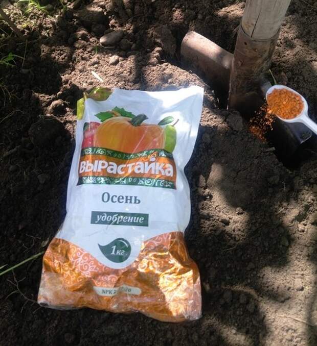 В углубления выкладывают ½ часть вносимой подкормки, затем перекапывают и распределяют по верхнему слою оставшуюся часть препарата. В завершении процедуры выполняют полив и раскладывают мульчу.