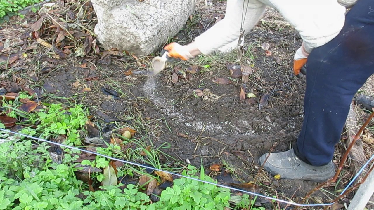 При посадке копаем небольшую посадочную яму, только чтобы в ней свободно поместились корни — размером примерно 0,5 х 0,5 м. За день до посадки корни помещают в раствор 3-процентного (слабого) раствора медного купороса.