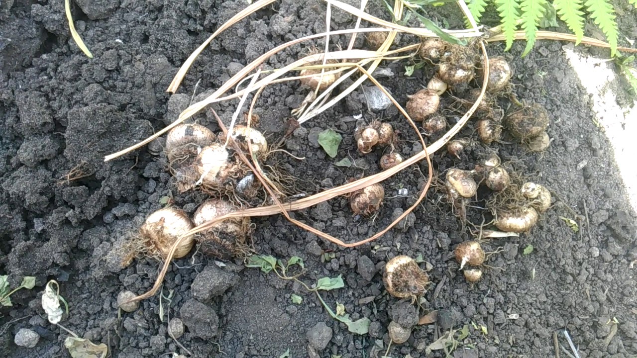 Эта листва луковицы также блекнет и желтеет после распускания луковиц. Выкапываю их, луковицу и все такое.