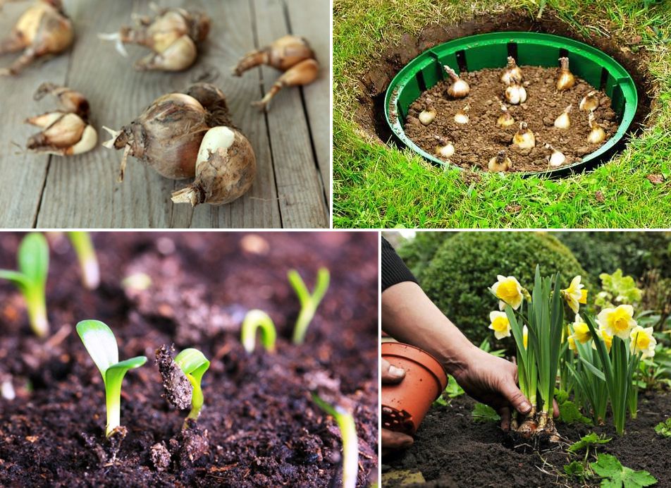 Лучшие и самые прочные луковицы можно пересаживать на то же место, при условии, что почва улучшена, а расстояние между луковицами достаточно велико, чтобы оставить место для расширения луковиц. Листва нарциссов должна оставаться прикрепленной, сколь угодно гибкой.