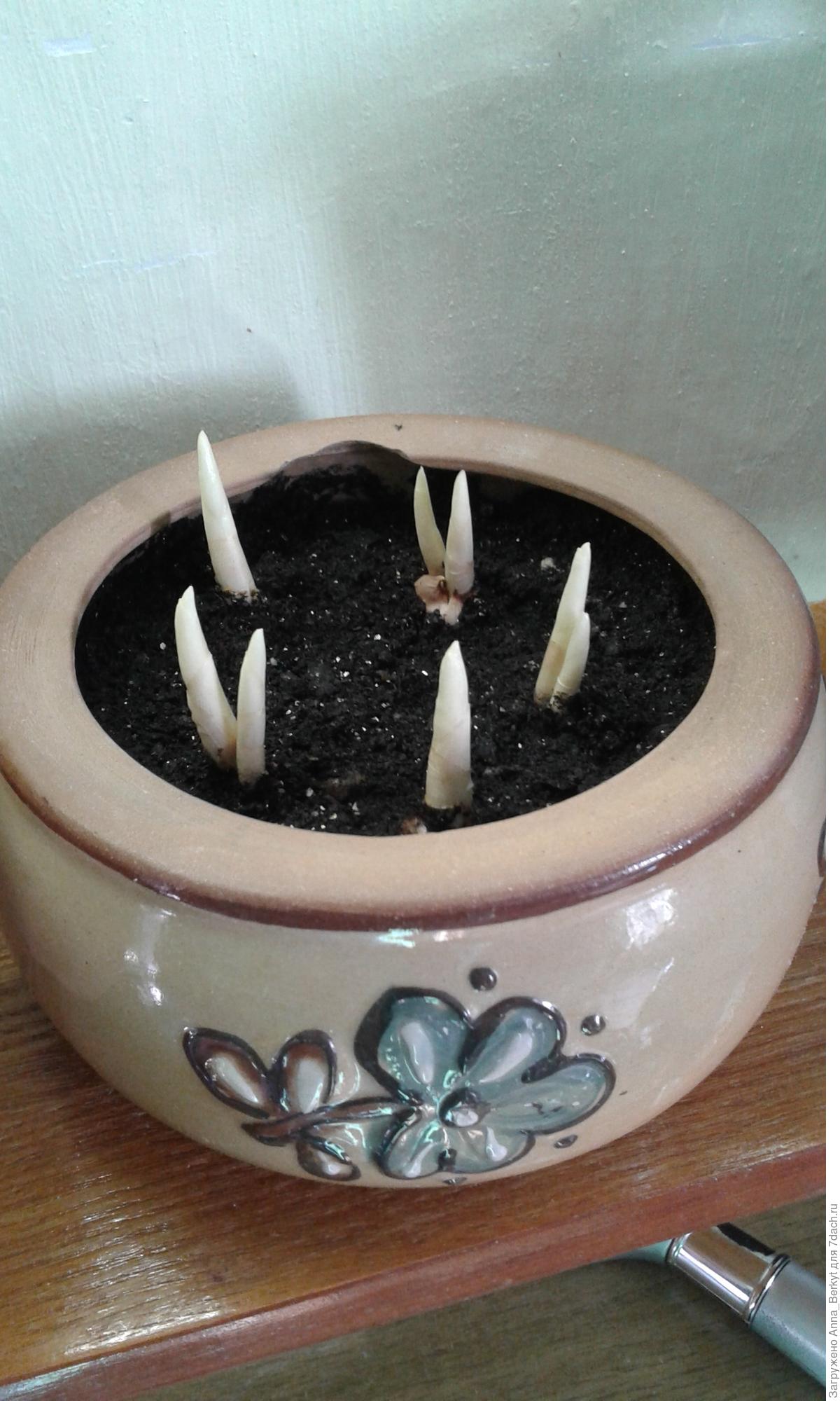 Последним этапом идет укоренение цветков — шафран сажают в горшок.