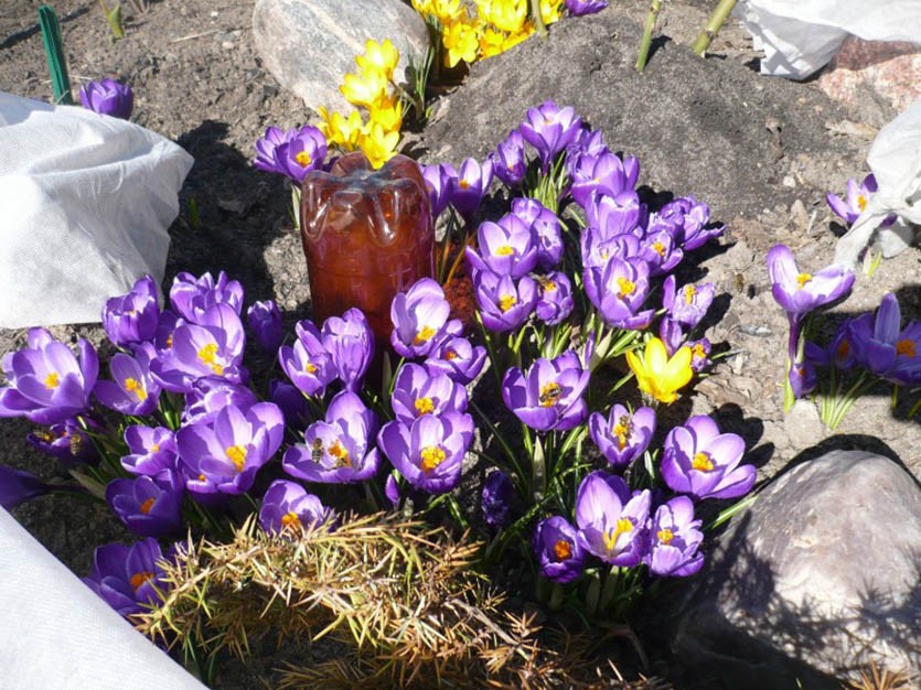 В то время как олени обычно оставляют крокусов в покое, у белок и полевок может развиться вкус к луковицам. Если они представляют собой проблему, рассмотрите возможность размещения проволочной сетки, такой как проволочная сетка, на почве над луковицами, чтобы предотвратить копание. Или посадите их в проволочные клетки для ламп. Поскольку их легко сажать и они дешевы, я стараюсь сажать достаточно, чтобы выжить наших местных белок, и при этом обеспечивать весеннее шоу.