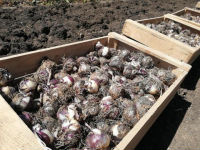 Как только луковицы выкапывают, им требуется обеспечить правильное хранение. Надо очистить посадочный материал от почвы, отмерших частей и положить в один слой на хранение. Идеальные условия для луковиц — температура +22°С, чтобы удачно произошла закладка почек, затем в августе +20°С и еще через неделю +15°С. Но в домашних условиях хранят в темном сухом, помещении, которое хорошо проветривается.