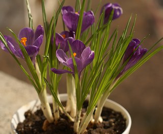 Легче всего вырастить букет из луковичных, в том числе из крокусов. Для выгонки больше всего подходят крупноцветковые голландские сорта. Луковицы крокусов примерно одного размера высаживают от пяти до десяти штук в неглубокие широкие горшки, чтобы к назначенному сроку получить целый букет первоцветов. Грунт для крокусов, высаживаемых на выгонку, должен быть нейтральным, рыхлым, воздухо- и водопроницаемым.