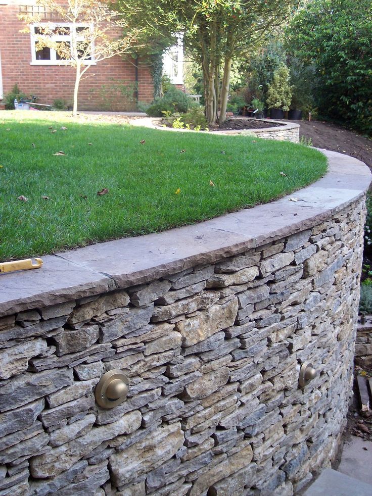 - Для изящного плавного завершения стены изогните стену, чтобы создать зону для посадки растений, которая смягчит внешний вид подпорной стены.