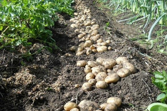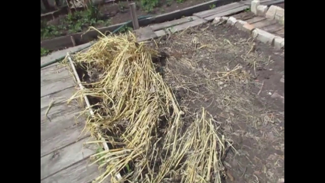 Растения срезают за несколько недель до посадки клубней. Затем вспахивают землю вместе с зеленью.
