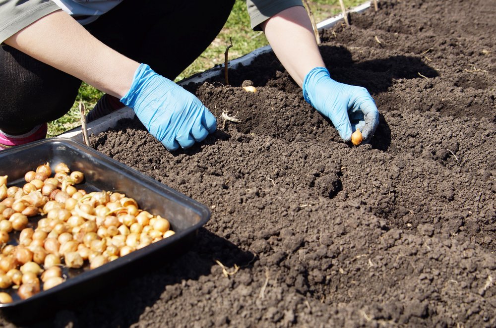 Сроки посева озимого лука приходятся на конец августа. Оптимальными будут грядки с тремя рядами лука и расстоянием в 0,5 метра между ними. На зиму лук можно накрыть светлым полотном, которое спасет посадки от вымерзания. Делать это следует непосредственно перед морозами. Снимать защиту рекомендуется до начала вегетации.
