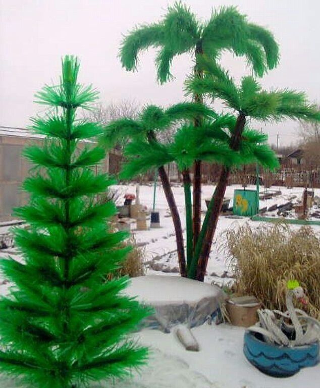 Пальмы уже стали почти традиционными деревьями в наших садах. Конечно, в садах тех, кто мастерит поделки из пластиковых бутылок. В принципе, техник создания пальм не так много.