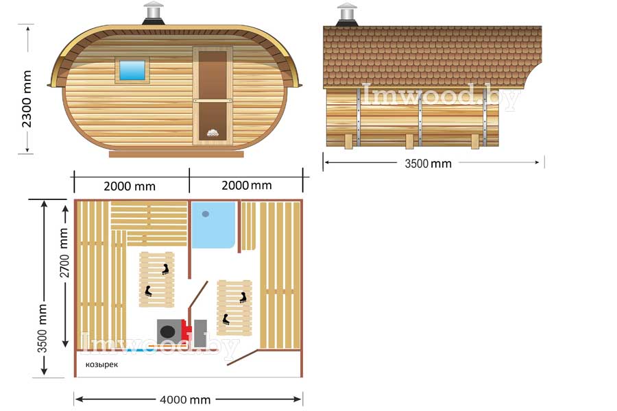 А чтобы максимально оптимизировать внутреннее пространство парилки, нужно попросту минимизировать поверхность пола и увеличить площадь пологов. Так, под полками пространство желательно и вовсе заглушить ради уменьшения прогреваемого объема, что позволит экономить топливо для печи и время прогрева парилки. А правильные размеры полков в парилке – это три полога, каждый из которых высотой около 35 см, причем верхний – самый широкий.