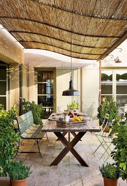 Просторное патио под навесом спасет вас и от дождя, и от палящего солнца
