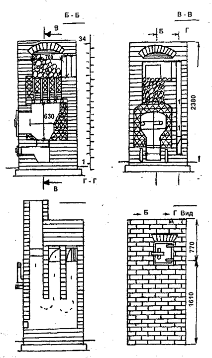 Печи, построенные по принципам системы свободного движения газа, очень просты. Это один или два колокола (камеры), поставленные один на другой или один рядом с другим. Колокол — это, по сути, перевернутая кирпичная «шапка», в которой кирпичные стены и / или колонны поддерживают потолок. В нижней части колпака расположены два отверстия: одно — вход, где горячие газы входят в колпак, а другое — выход, где выхлопные газы живут в колпаке. По этой схеме построен верхний колпак, где выход — выход в дымоход.В нижнем колпаке такой выход представляет собой вход в восходящий канал (каналы), по которому газы проходят из нижнего колпака в верхний. Нижняя часть печи представляет собой топку, размещенную в колпаке по определенным правилам. Такие правила перечислены в статьях: «Основы строительства печей», «Строительство многоярусных печей», «Основы строительства котлов», «Банные печи», «Пиролизные котлы» и других, доступных на нашем сайте.