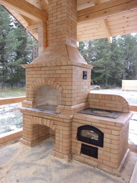 Своими руками готовим местоСтроительство надо производить на открытой хорошо обдуваемой местности и подальше от легко воспламеняемых объектов. Так же рекомендуется оборудовать это место каким-нибудь укрытием, чтобы защитить печь от непогоды. Дополнительное удобство обеспечит небольшая беседка, в которой гости могли бы собираться.