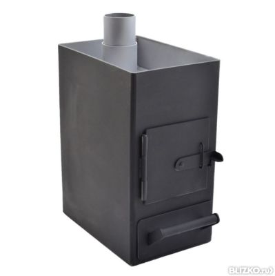 Печи же открытой конструкции имеют бак с объемом поменьше, а каменку – открытую. Парилка такой печью прогревается намного быстрее, а для увеличения теплоемкости камни накрываются экранной оцинкованной крышкой. А вот комбинированные металлические печи изготавливаются из листов стали с толщиной 3-5 мм и состоят из топливника с двумя задвижками, поддувалом и решеткой, и из двух патрубков 10 и 14 см диаметром, с четырьмя отверстиями для трубы и обводного колена.