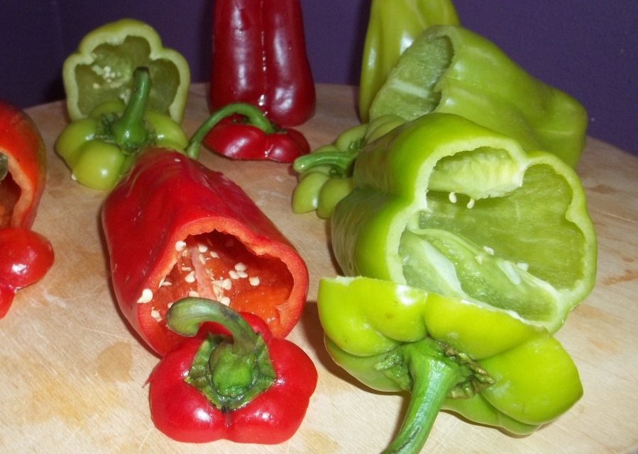 - 4 больших сладких перца любого цвета на ваш вкус; наш любимый красный