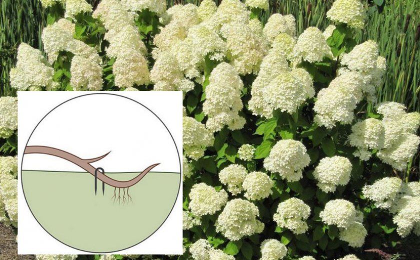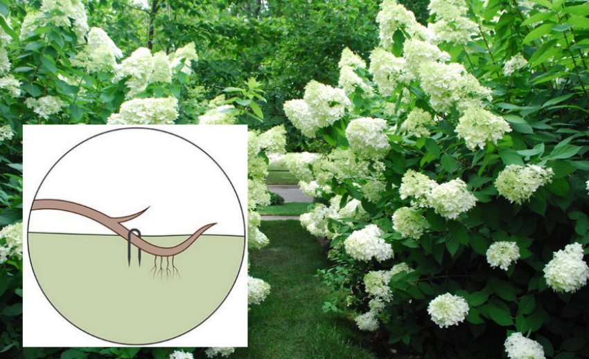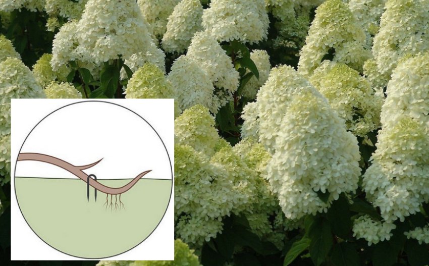 Либо прикопать в бороздку (ямку) молодые побеги гортензии, иначе говоря, размножить гортензию отводками.