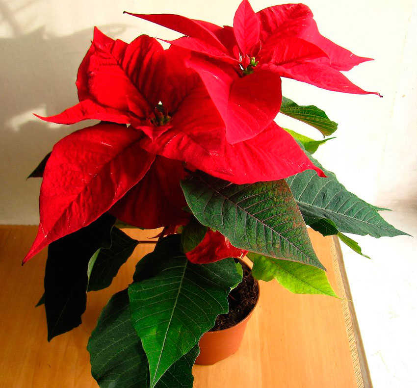 Пуансетия любит жить на западных или восточных окнах, но прямые лучи солнца ей вредят, как и сквозняки.