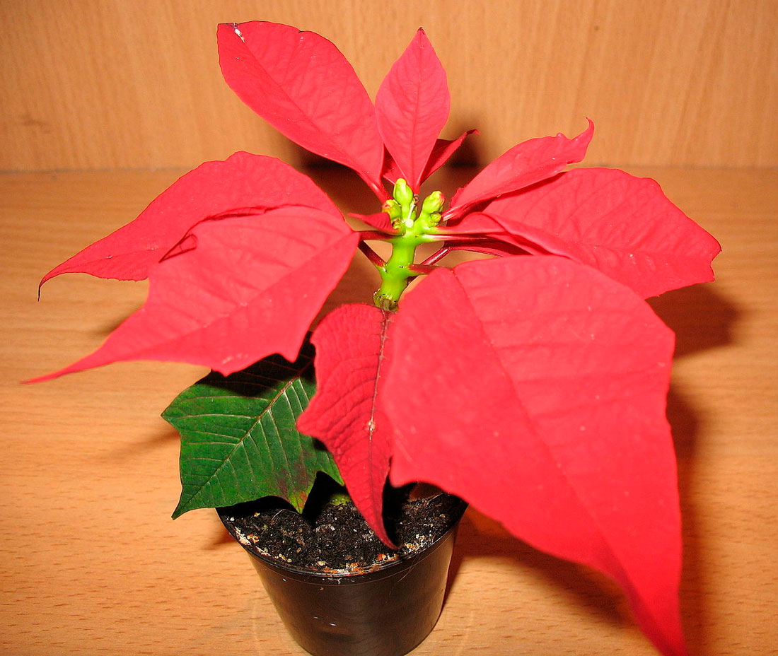 Когда черенки укоренятся, а это случится примерно через месяц, температурный режим может стать немного свободнее, но опускаться ниже 16 ºC температура не должна. Осенью молоденькие пуансетии пересаживают в горшки диаметром 18-20 см, но стать красивыми цветущими кустами они смогут только через год.
