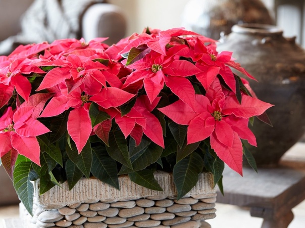 Уже традиционно в канун Нового года на прилавках появляются ярко-красные, розовые или белые кустики-букеты в горшочках – это пуансетия, один из символов Рождества.