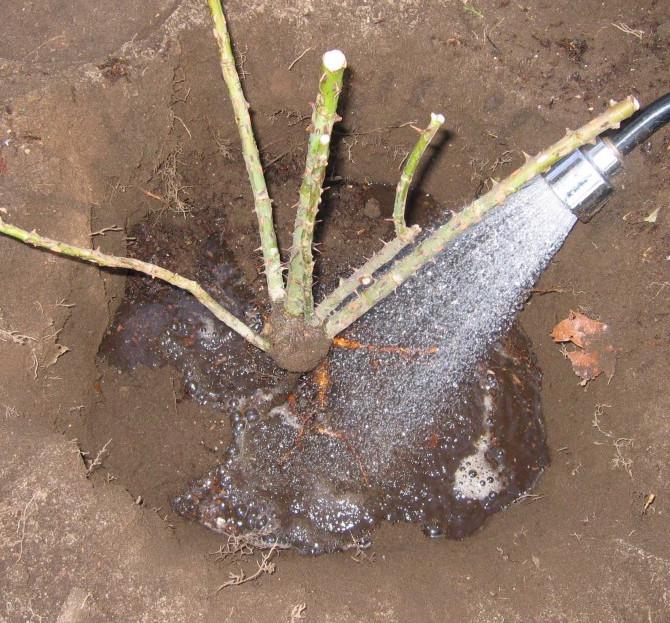 И когда вы делаете пересадку, потому что ваш розовый куст потеряет часть своих корней, после пересадки очень тщательно полейте его