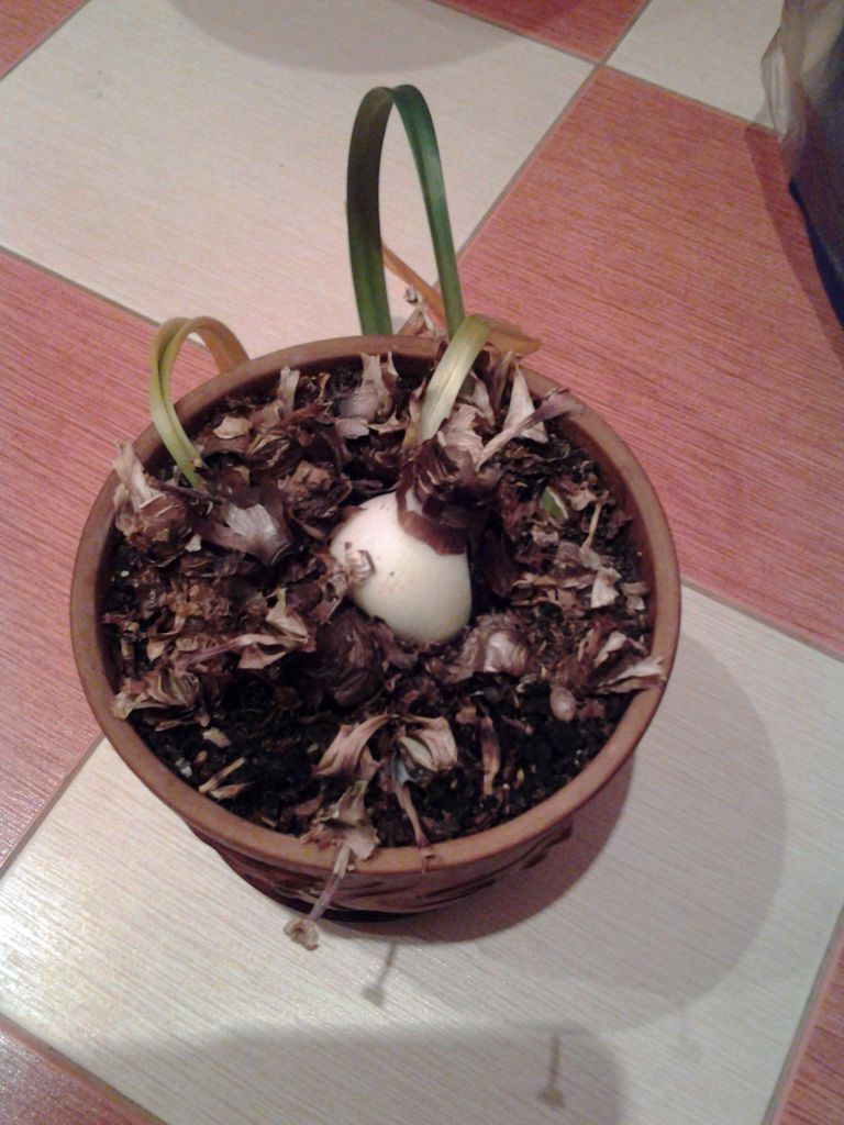 Такой гиппеаструм проснется сам по себе через несколько недель, выпустив мощный цветочный колос или первый лист.