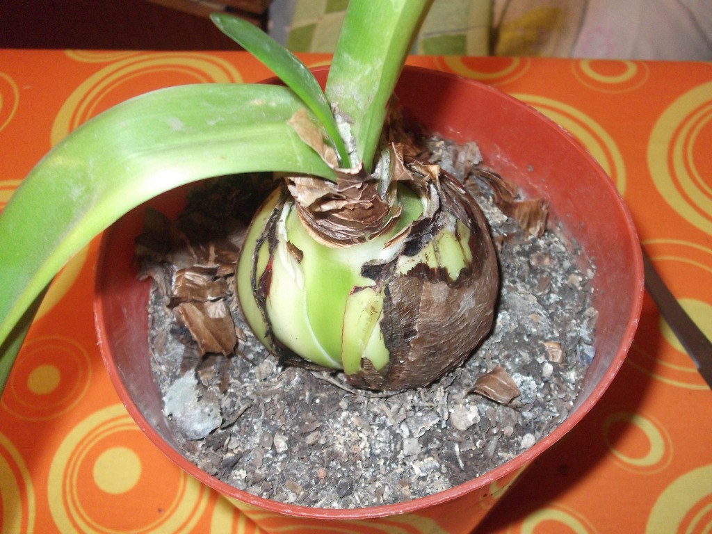 Что делать, если отцветший гиппеаструм дает листья дальше, находясь уже в прохладном месте? Сама луковица поможет ответить на вопрос: