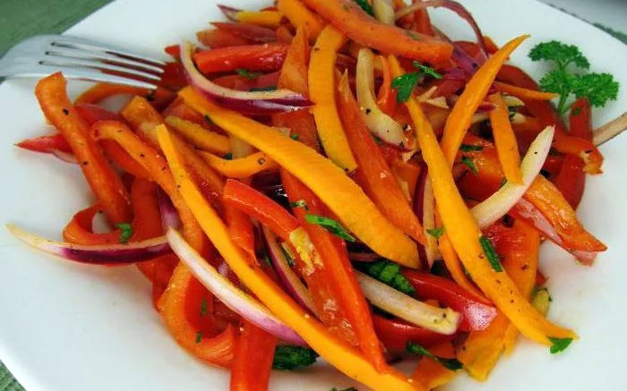 Сладкий перец нарезаем соломкой.