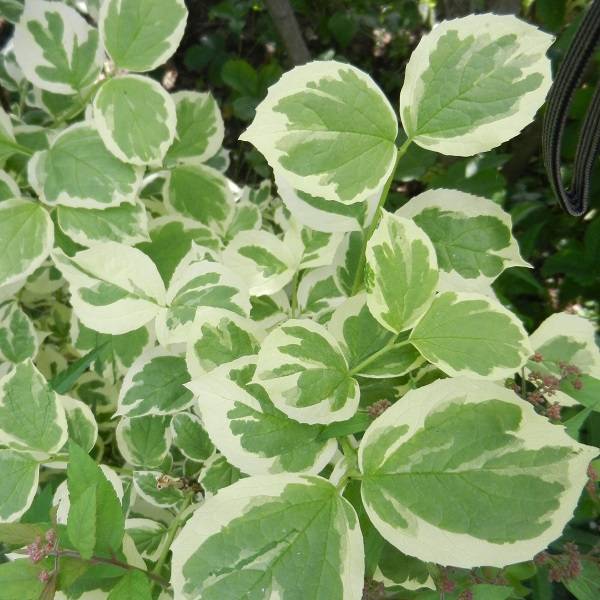 Также известный как пестрый японский чубушник, компактный вечнозеленый кустарник с пестрой листвой.
