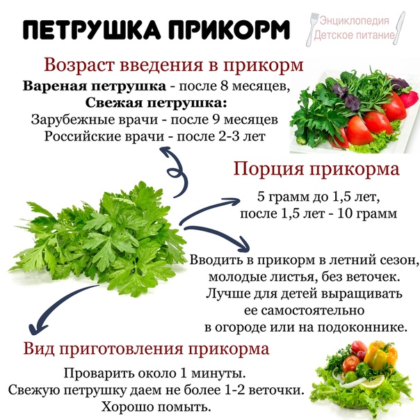 Она повышает гемоглобин, благодаря чему малышу не грозит гипоксия. Петрушка улучшает работу пищеварительного тракта, снижает вероятность вздутия и метеоризма.